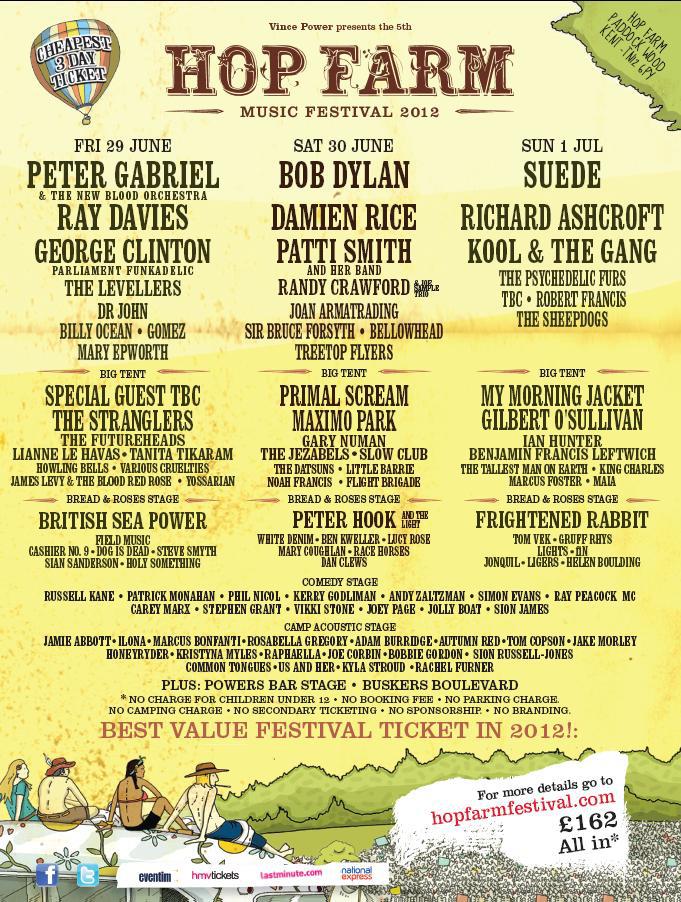 The festival will feature its three stages – Main Stage, The Wild Wood and Oast House stages as well as the The Shindig stage in the Campsite. Buskers Boulevard is to return as well new features The Campsite Choir, Marching Bands, Fun Fair and Children’s Area. Audiences can see some great-established acts and well as emerging musical talents that festival fans won’t always get the opportunity to see elsewhere. The Hop Farm maintains its original 70s festival feel with its roots firmly set in creating a great atmosphere. The festival will have a capacity of 10,000 this year allowing the organisers to remain committed to delivering a fantastic weekend of music whilst maintaining their No Sponsorship/Branding.